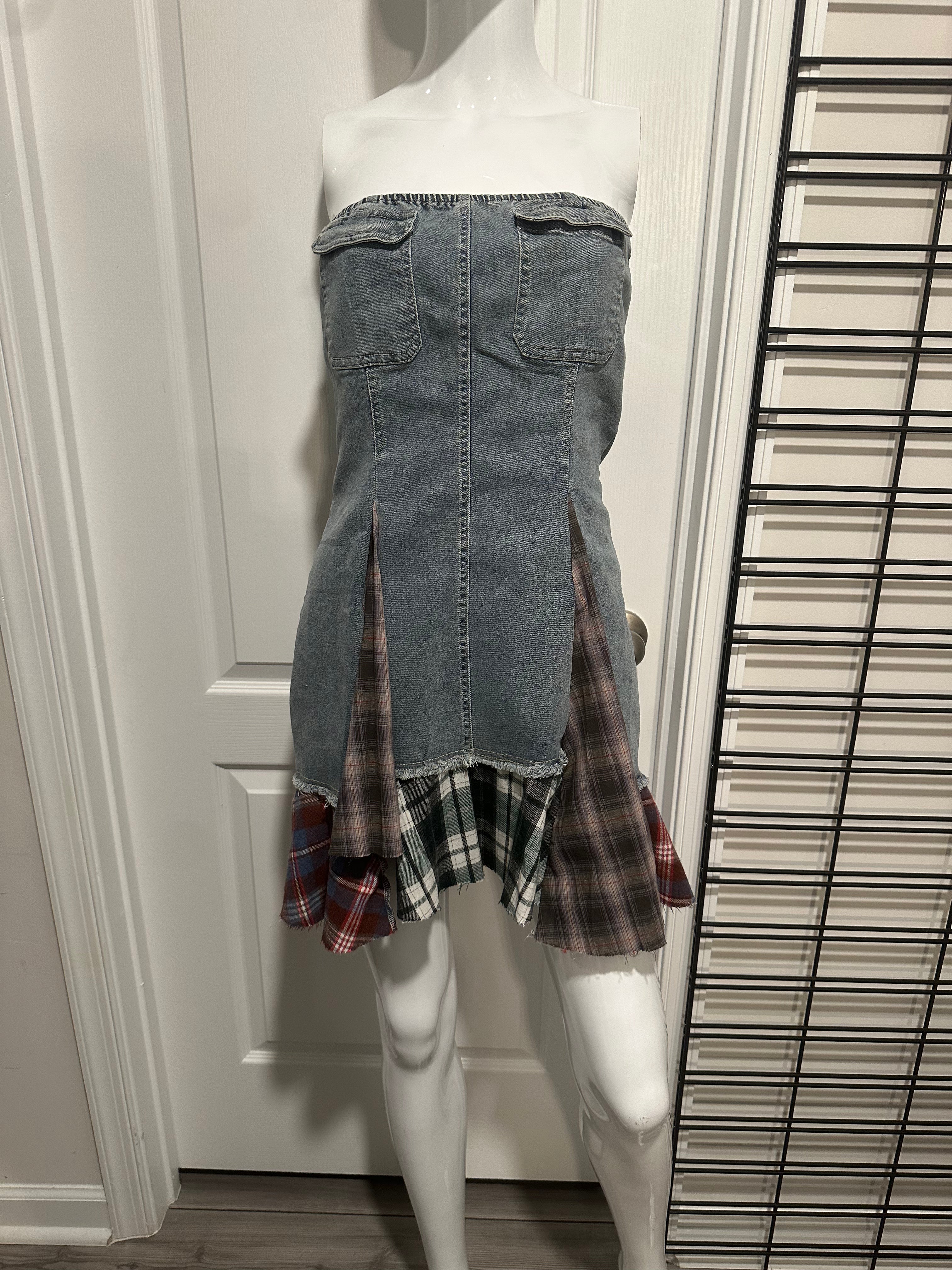 Crafted from mixed denim panels in varying washes, this sleeveless dress showcases thoughtful patchwork construction that adds visual depth and character. The relaxed fit provides comfortable everyday wear, while the durable denim fabric ensures lasting quality. Perfect for layering or wearing solo, this versatile piece transitions seamlessly from casual outings to weekend gatherings. The sleeveless silhouette offers breathability, making it an ideal choice for warmer seasons or layered styling year-round.