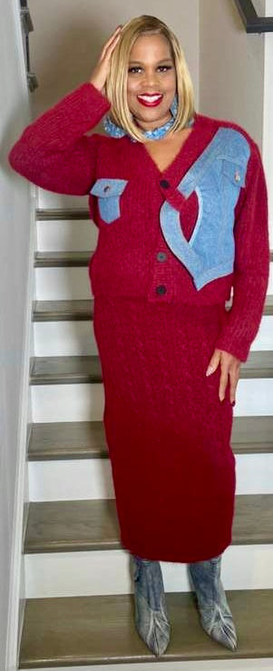 This versatile 2 piece set features a classic combination of burgundy and denim, making it a timeless addition to your wardrobe. The high-quality materials provide both comfort and style, making it perfect for any occasion. Elevate your fashion game with this must-have set.