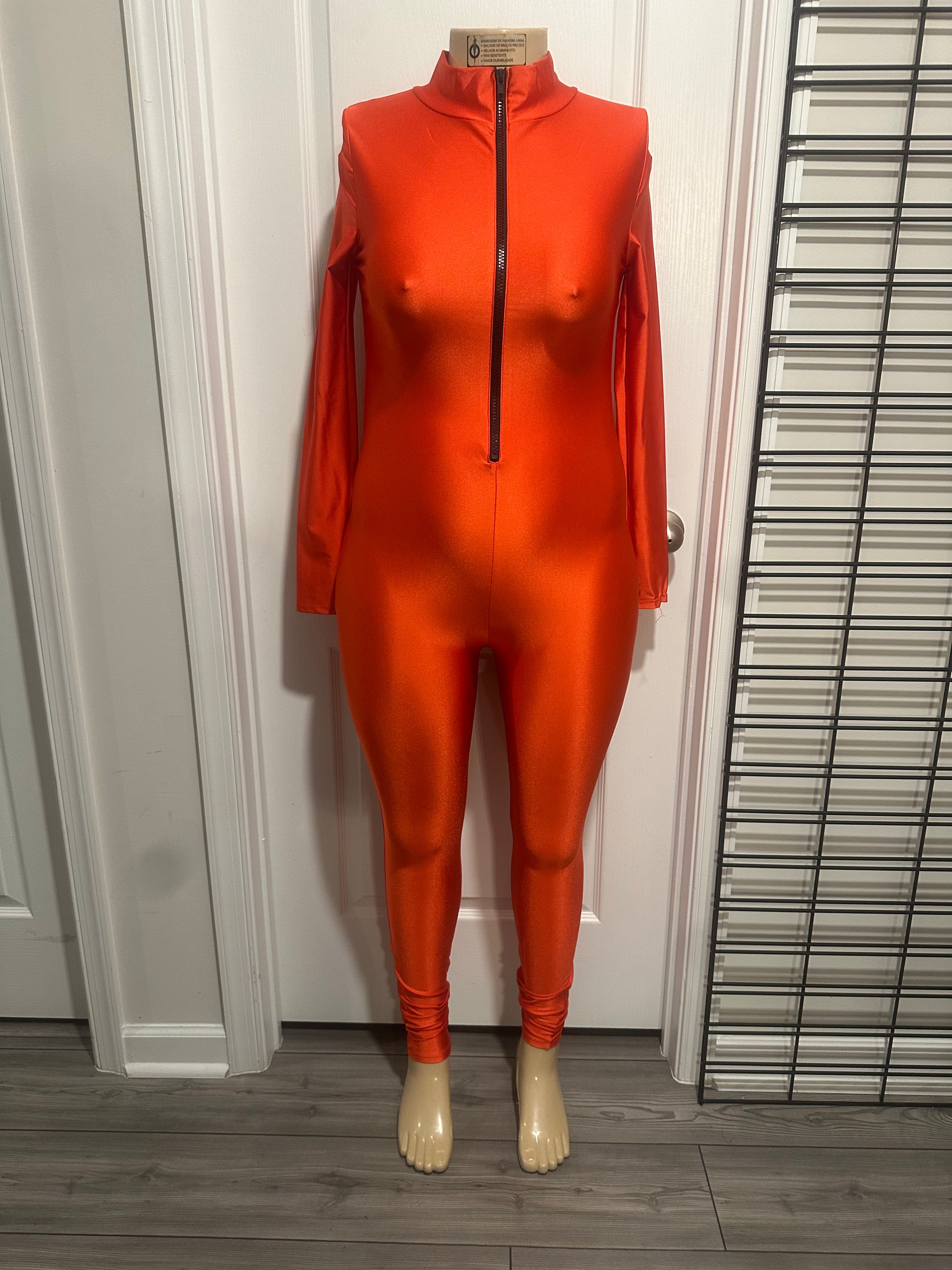 Hot Orange Bodysuit Elevate your wardrobe with this striking hot orange bodysuit, a versatile piece that commands attention. The vibrant hue flatters a range of skin tones while the fitted silhouette creates a sleek, polished look. Perfect layered under sheer fabrics, styled with tailored trousers, or worn as a standalone statement piece, this bodysuit transitions seamlessly from day to evening. The bodysuit construction ensures a smooth, tucked-in appearance without constant adjustments. An essential addition for anyone seeking bold color and refined simplicity in their everyday rotation.