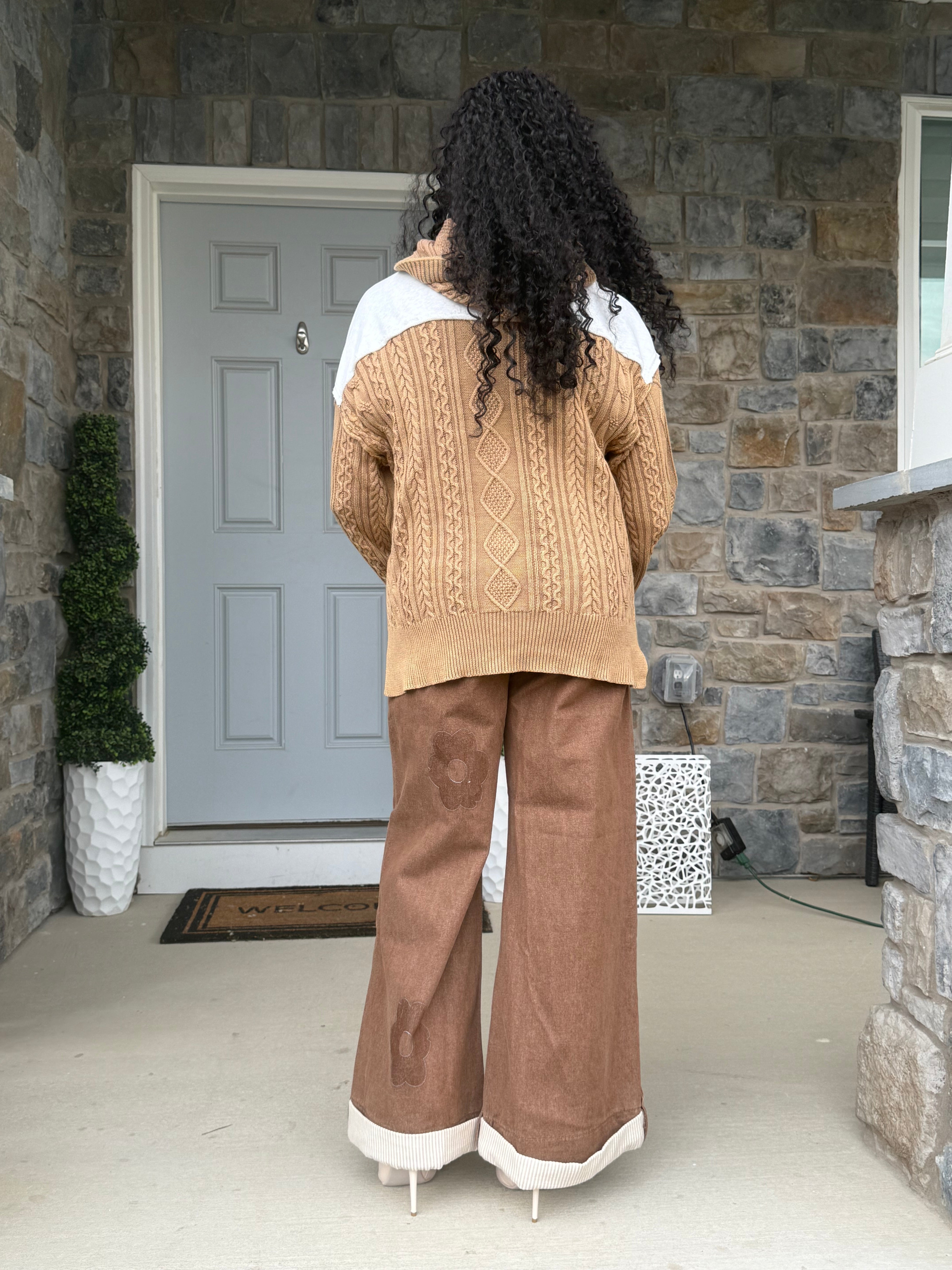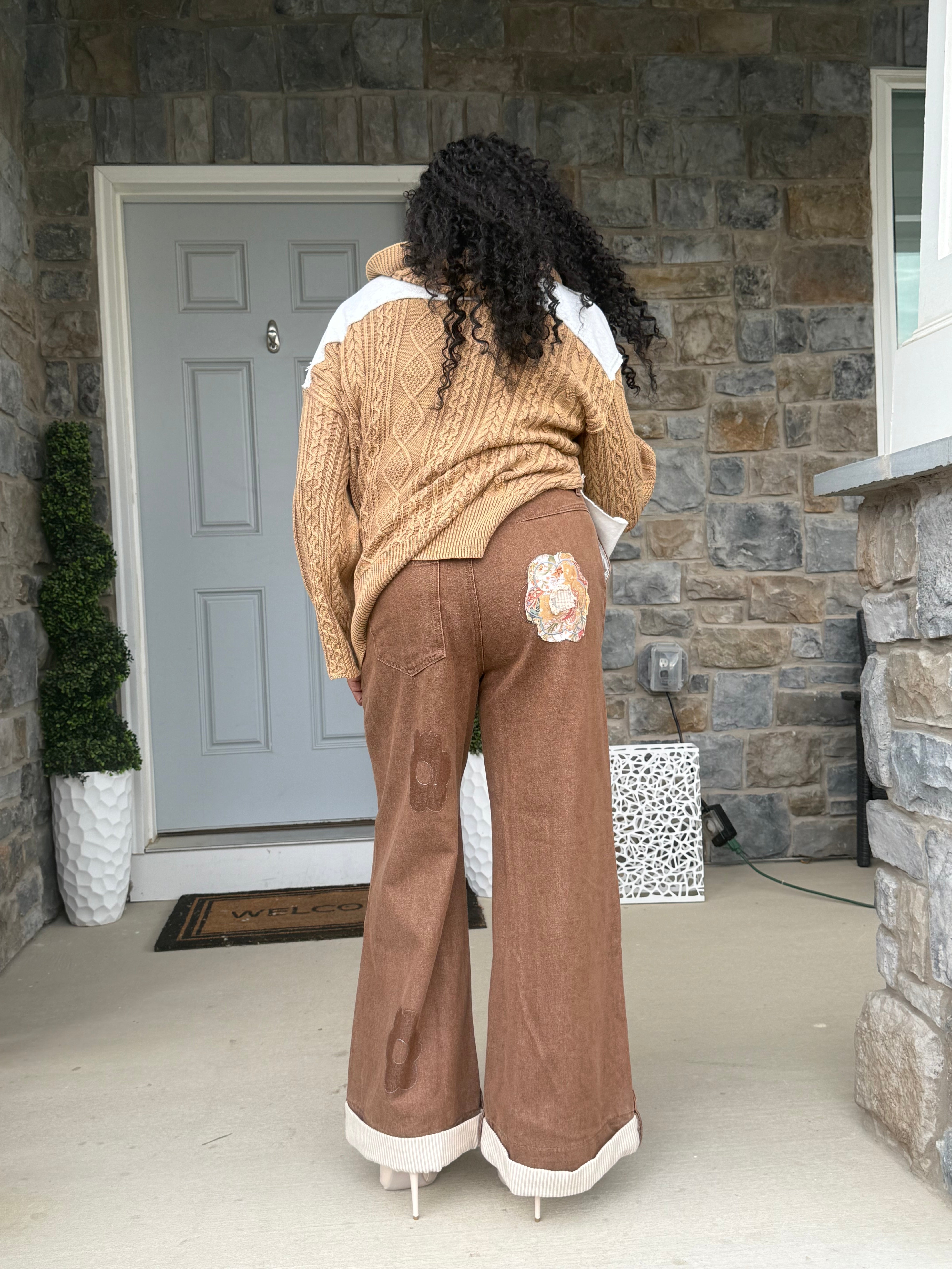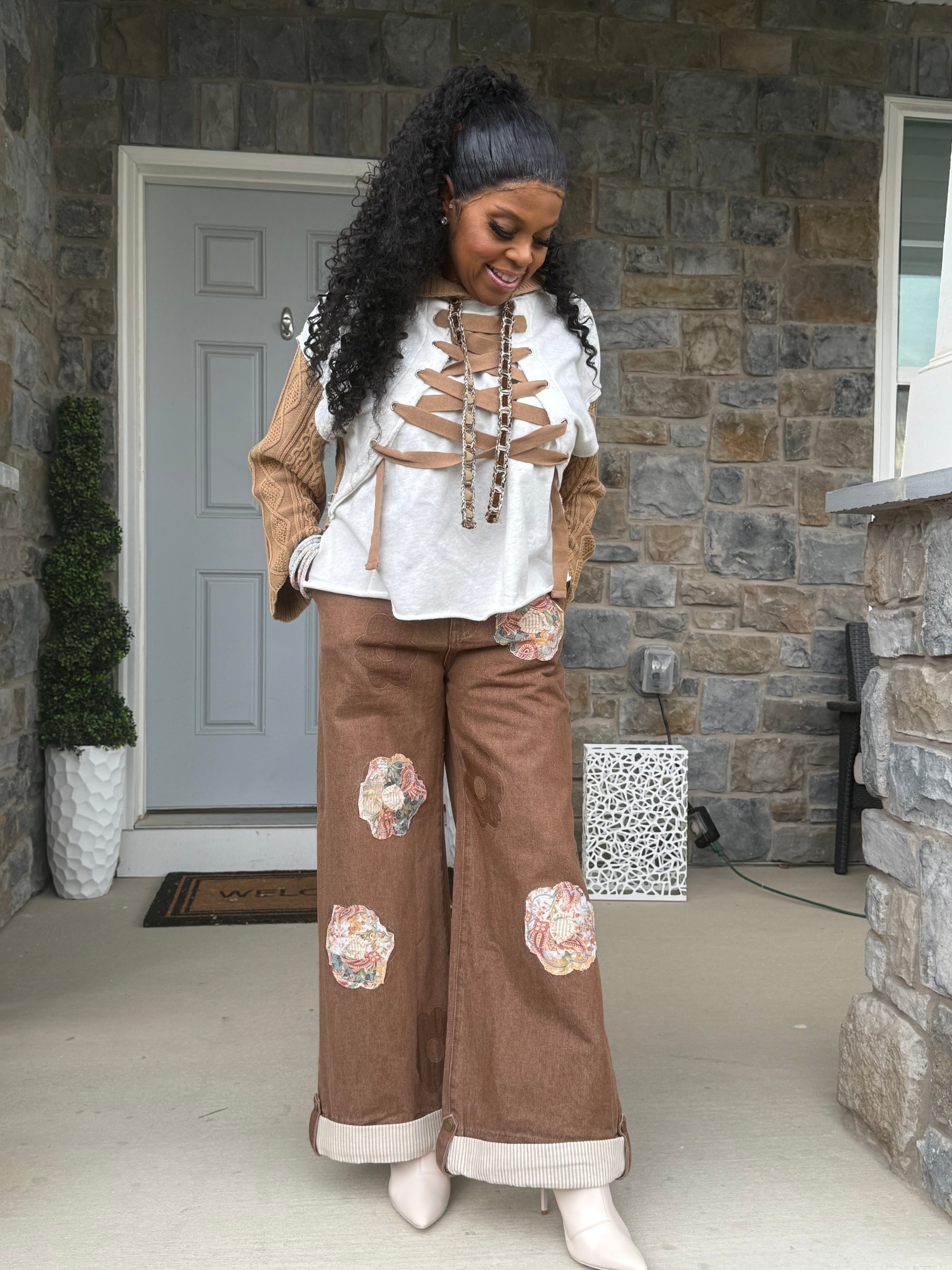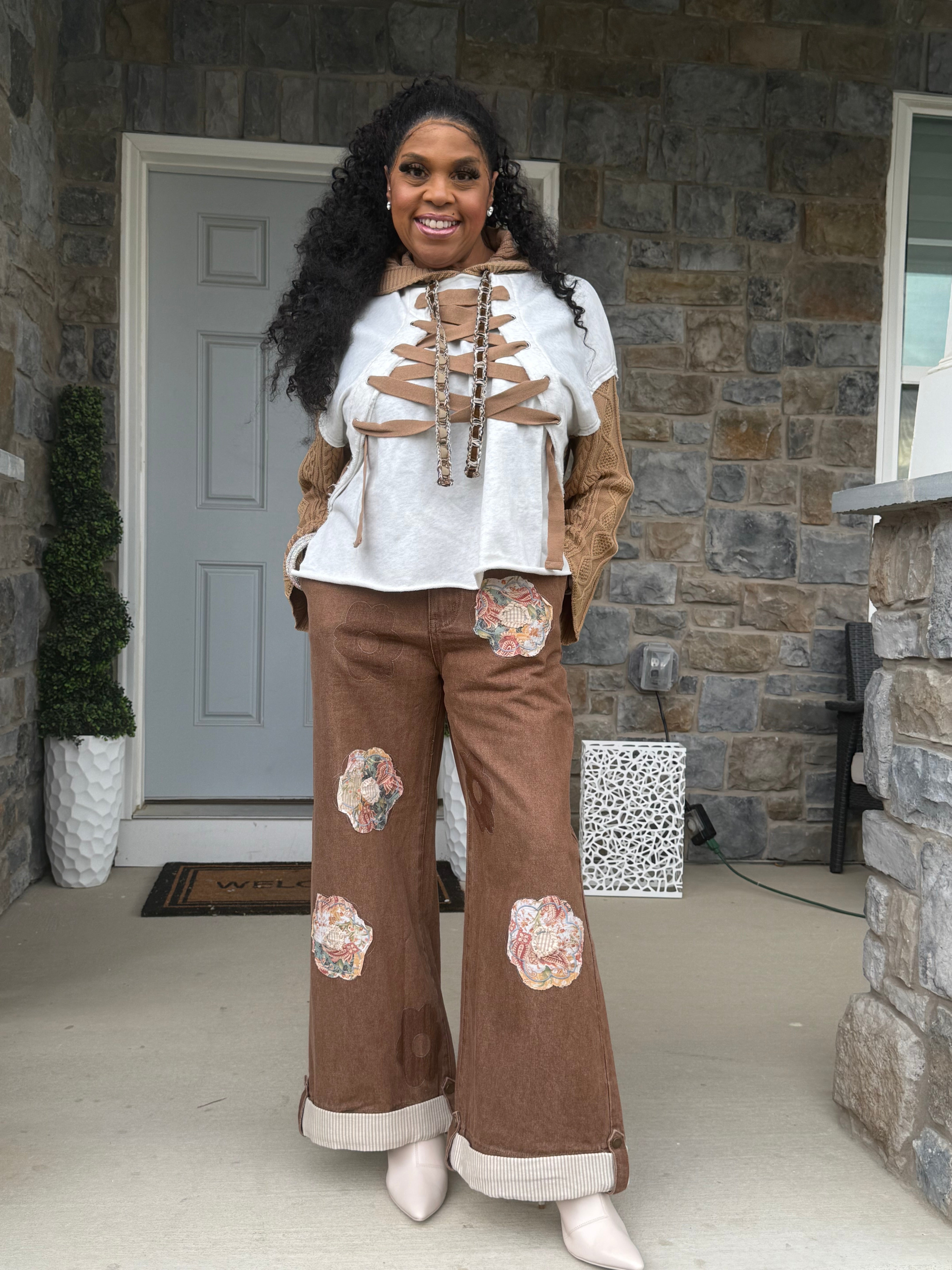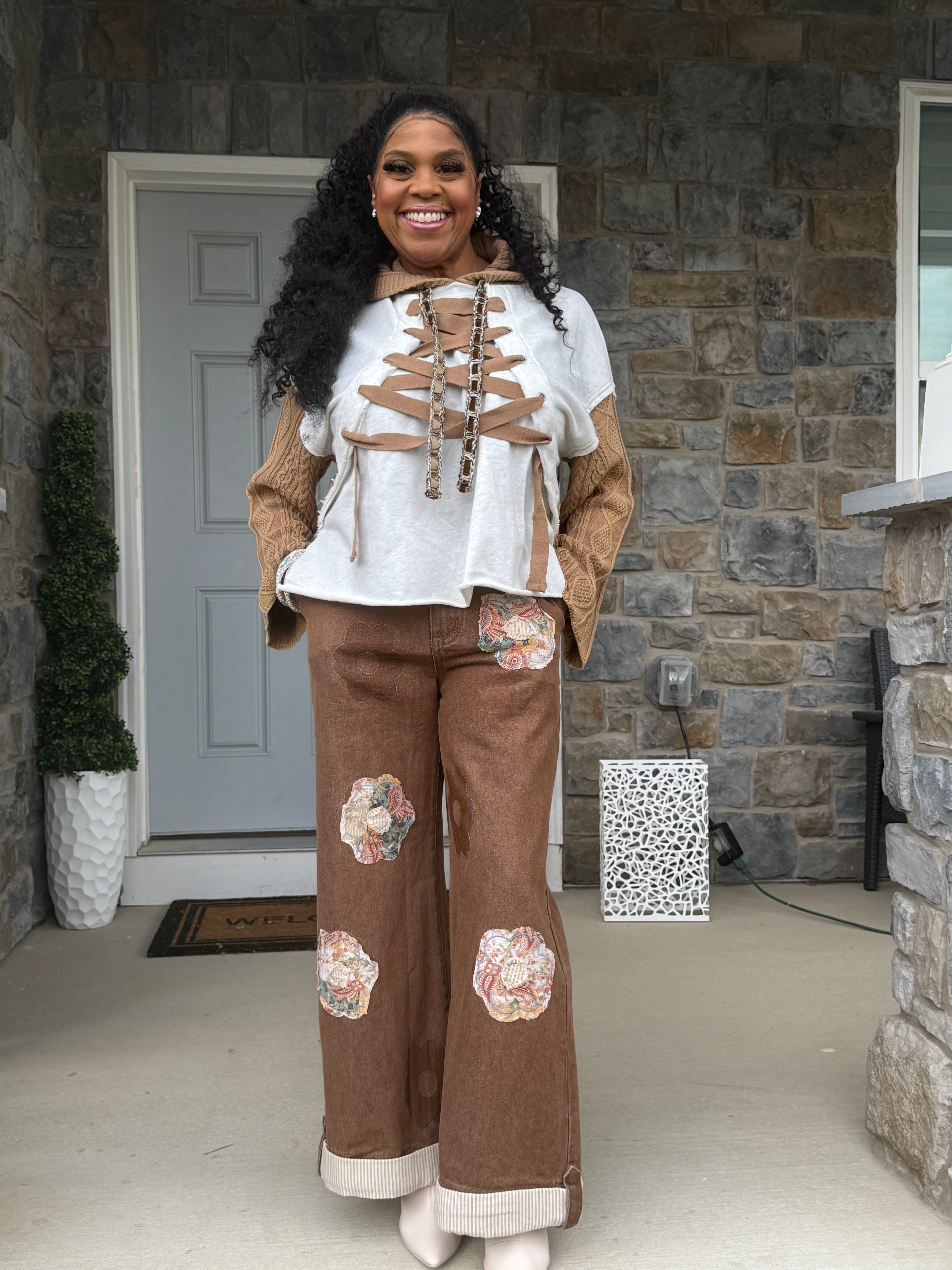 2PC Set with denim pants and hoody sweater boho style. Some stretch. Model wearing Small.