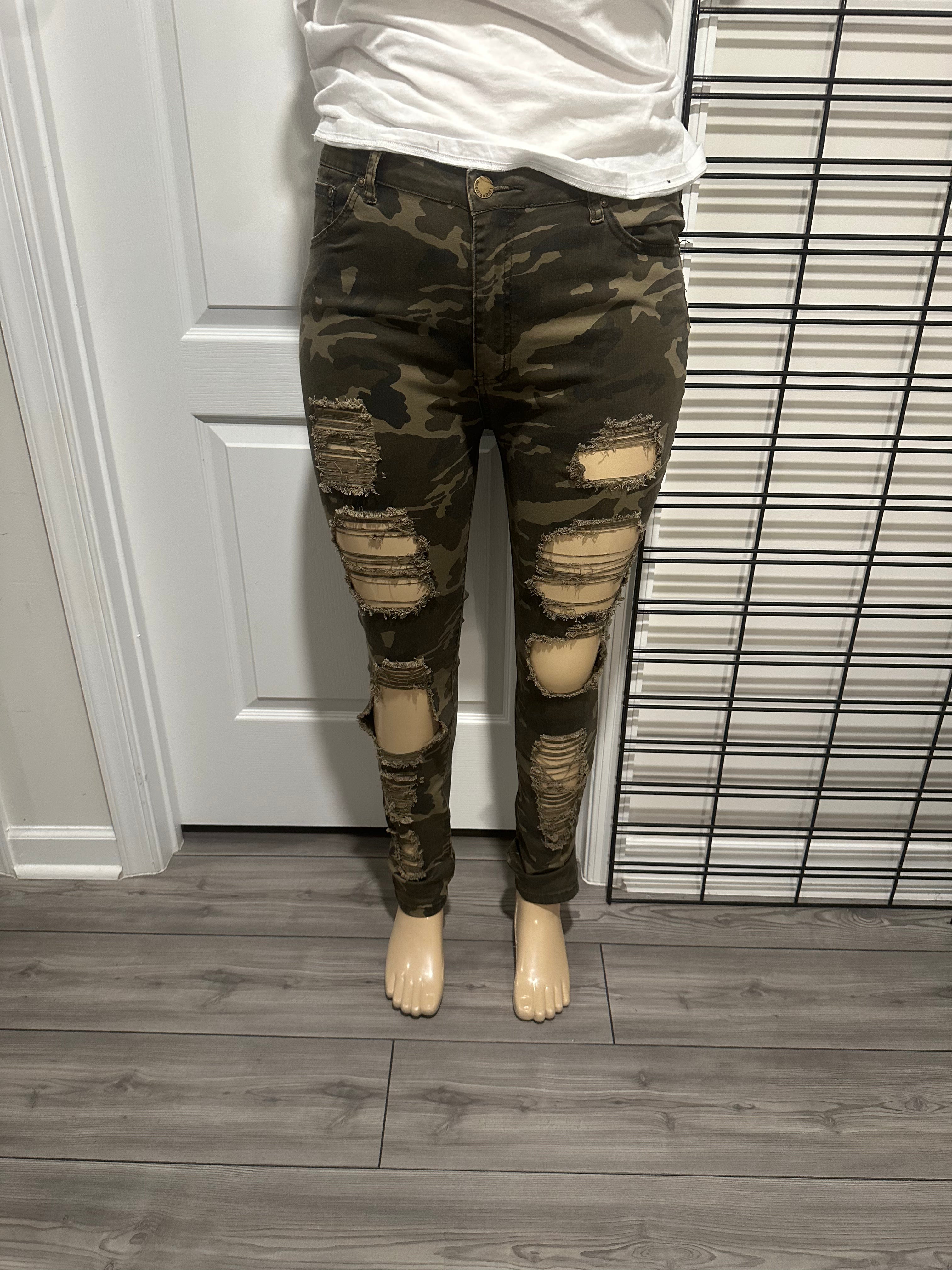 Distressed Camo Jeans
