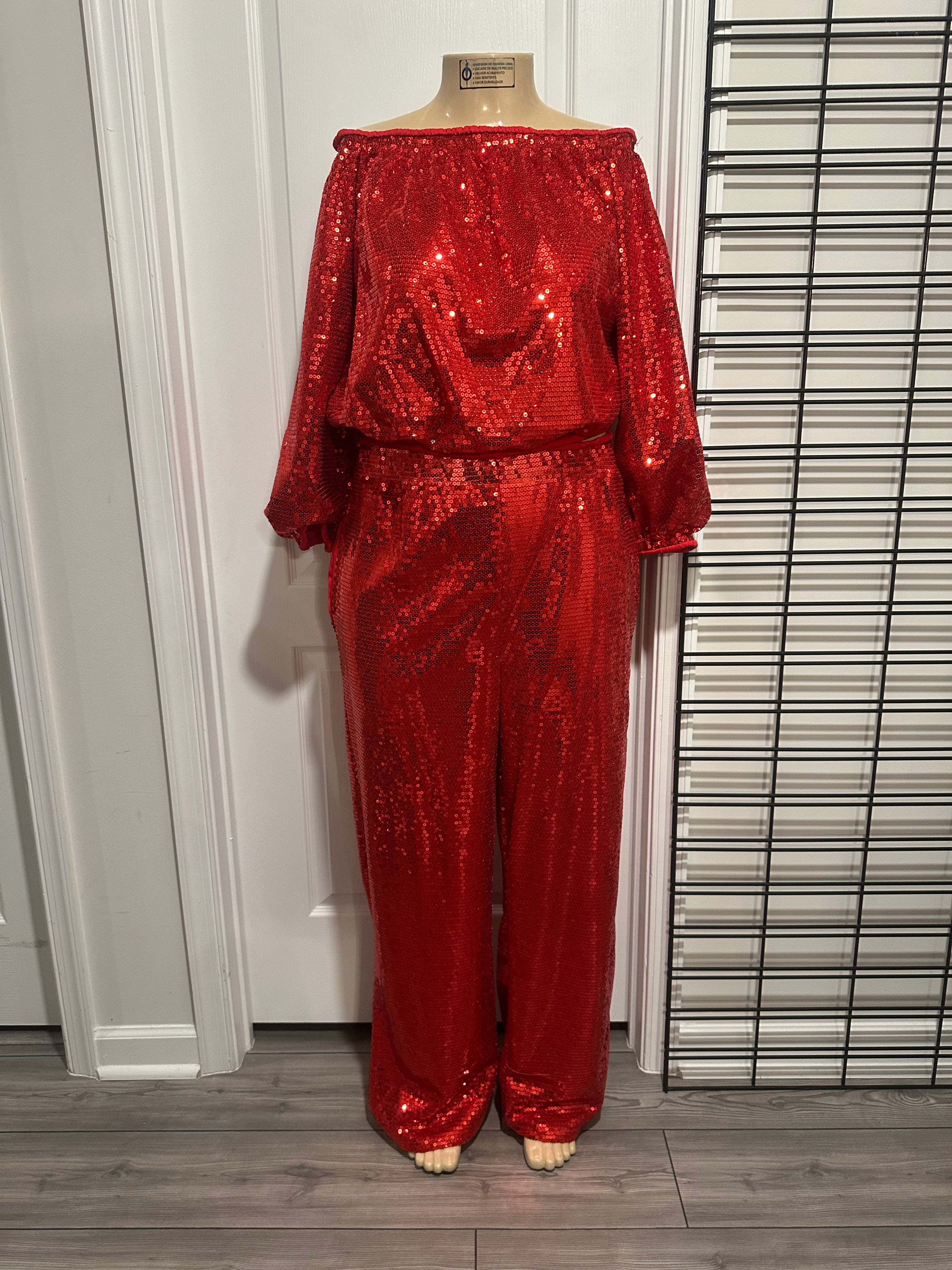 Elevate your evening wardrobe with this striking sequin off-shoulder set. The shimmering sequin fabric catches light beautifully, creating a glamorous silhouette perfect for special occasions, parties, and upscale events. The off-shoulder design offers a sophisticated, modern aesthetic while maintaining an elegant neckline. Versatile enough to pair with heels for formal affairs or dress down with casual accessories for a night out. A statement piece that delivers confidence and style.
