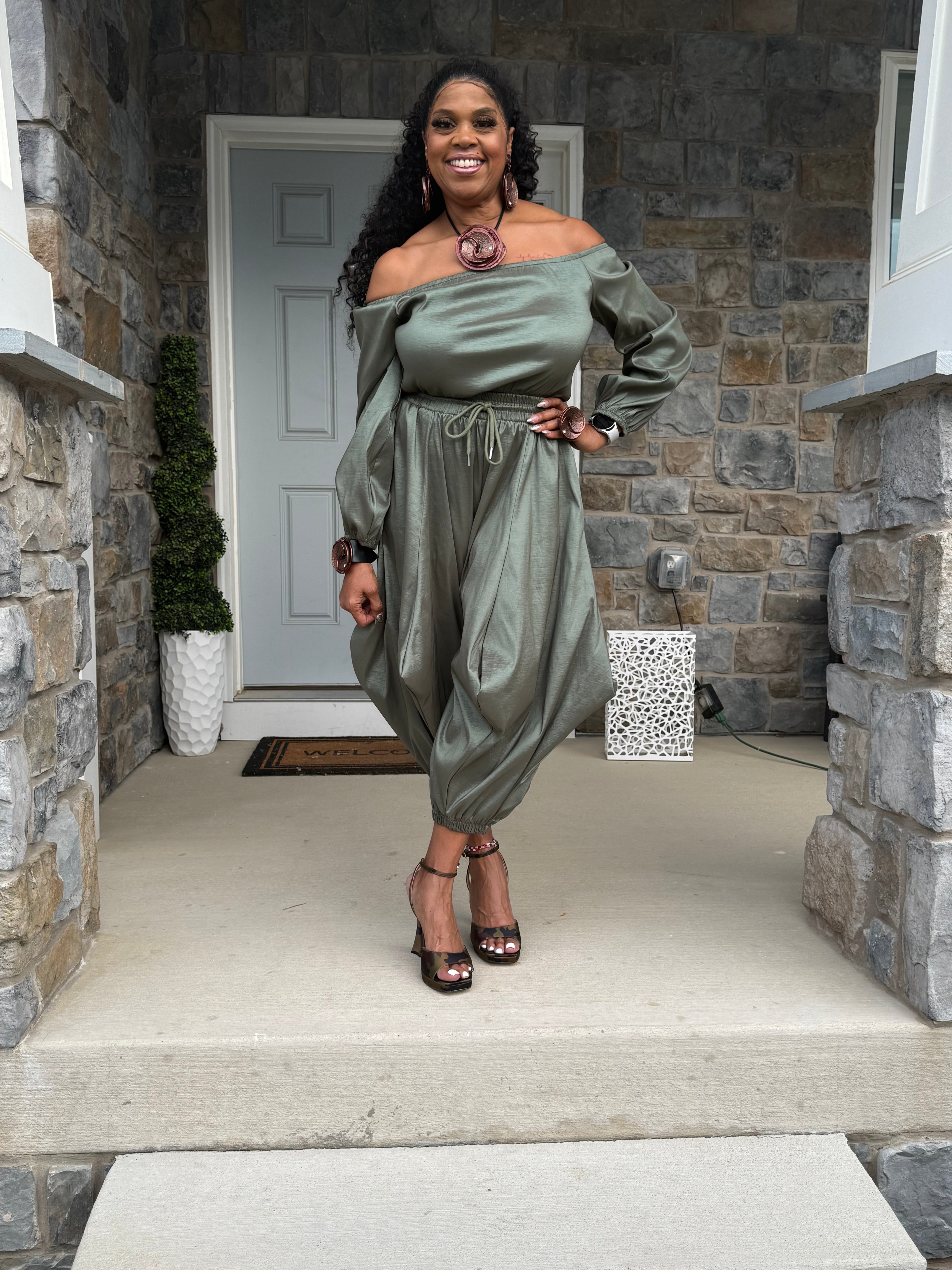 This Two Piece Off Shoulder Crop Pant Set is a stylish and versatile addition to any wardrobe. Its off shoulder design adds a touch of femininity, while the crop top and skirt combination can be dressed up or down for any occasion. Made with high-quality materials for a comfortable and flattering fit.
