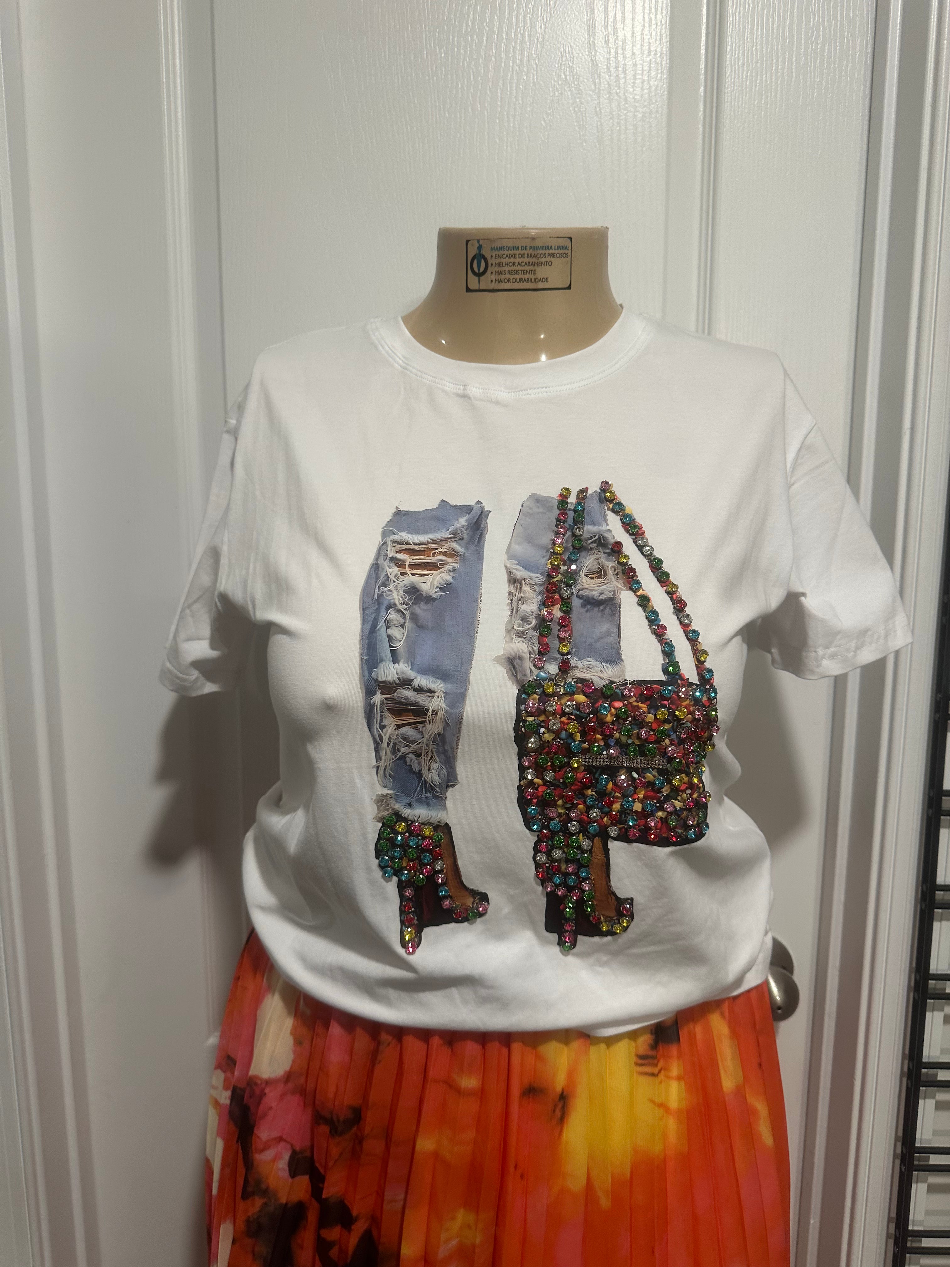 Diamond Bling T-Shirt Make a statement with this eye-catching Diamond Bling T-Shirt, designed for those who appreciate bold, standout style. Featuring premium diamond-inspired embellishments that catch the light with every movement, this tee combines comfort with contemporary flair. The high-quality fabric ensures durability through regular wear and washing, while the expertly placed bling detailing adds dimension without compromising wearability. Perfect for casual outings, social events, or anyone looking to elevate their everyday wardrobe with a touch of glamour.