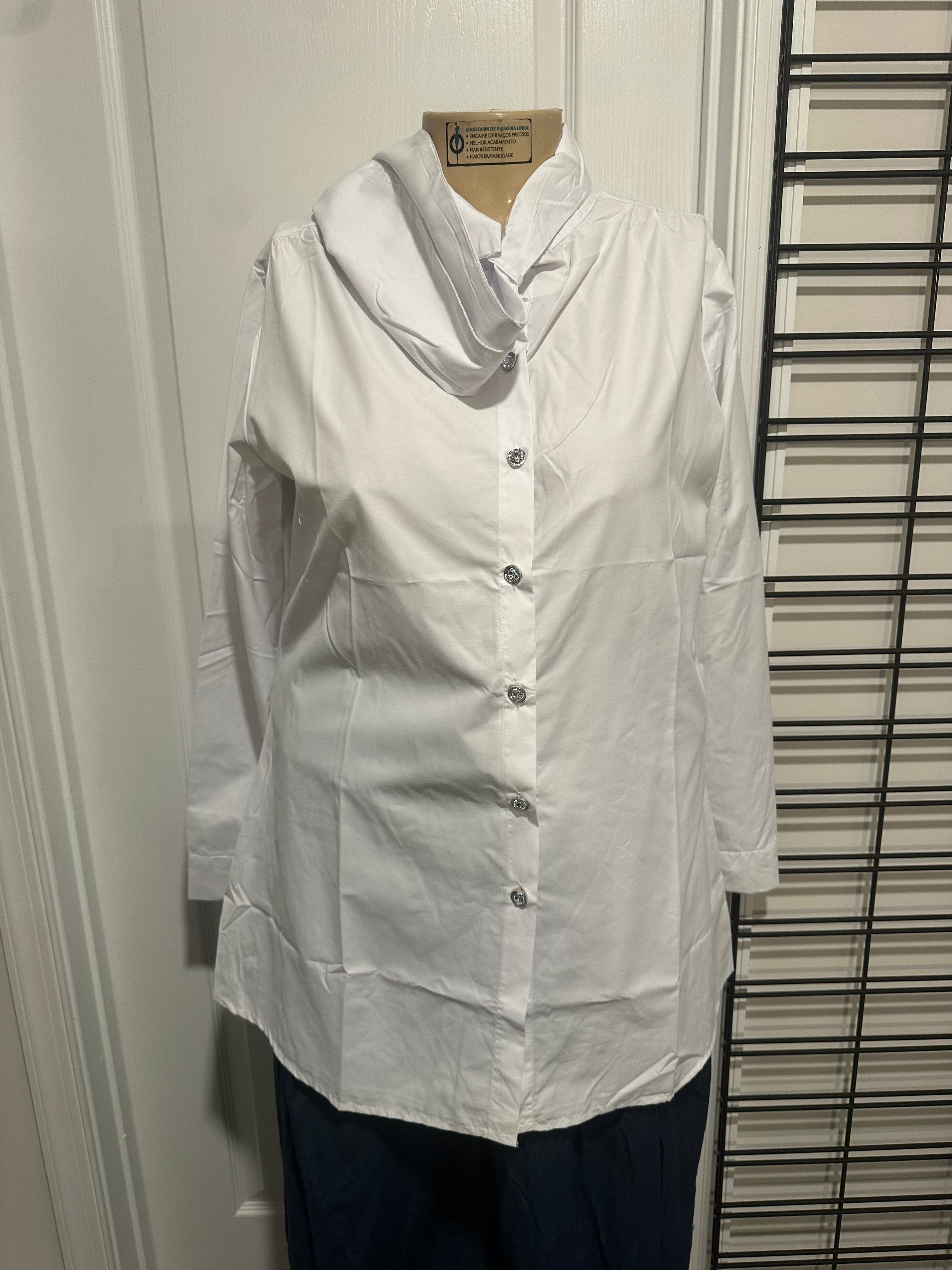 White Diamond Button Down Blouse Elevate your wardrobe with this sophisticated button-down blouse, featuring an allover diamond quilted texture that adds visual depth and refined dimension. The relaxed, slightly oversized silhouette provides comfortable movement while maintaining a polished aesthetic—perfect for layering or wearing solo. Crisp white fabric and classic button closure make this piece a versatile essential that transitions seamlessly from professional settings to casual occasions. The generous fit ensures an effortless, contemporary look without sacrificing structure or elegance.